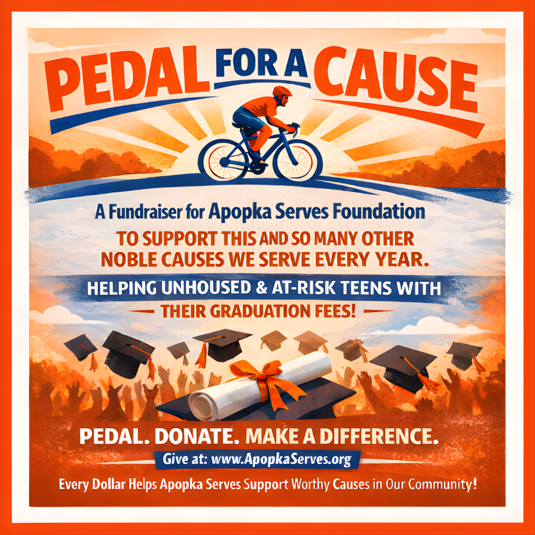Join Apopka Serves Foundation for Pedal for a Cause, a community-powered event bringing people together to make a real difference—right here at home.